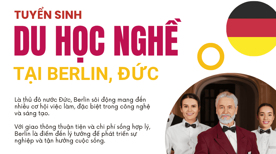 Chương trình du học nghề tại Berlin miễn 100% học phí học nghề, hỗ trợ học lại và luyện thi B1 miễn phí trọn đời. Cơ hội định cư lâu dài, làm việc tại các thành phố lớn của Đức.