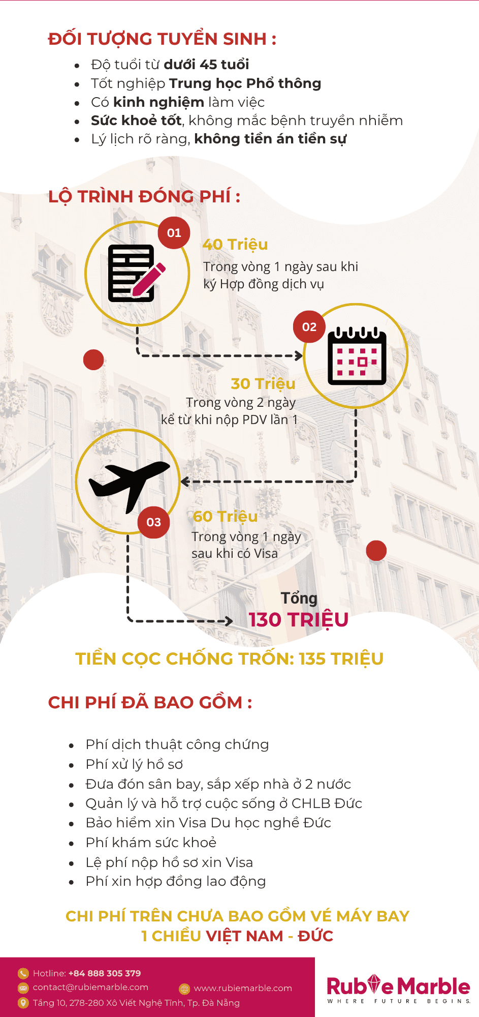 Chương trình ngắn hạn 8 tháng với thu nhập ~2.300 Euro/tháng, không yêu cầu tiếng Đức đầu vào. Bay nhanh chỉ sau 3–4 tháng, phù hợp người có kinh nghiệm và sức khỏe tốt.